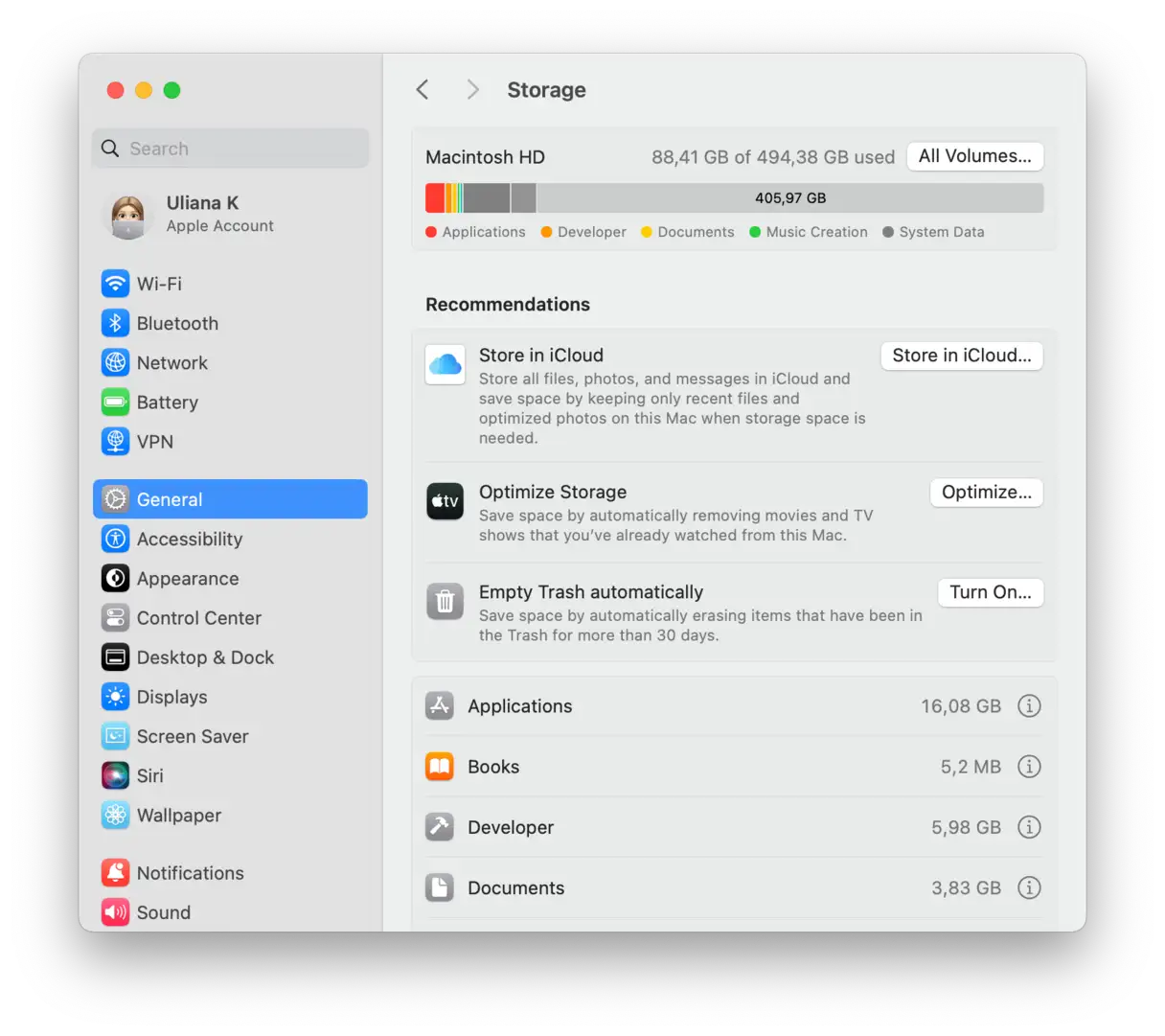 يُعد نقص مساحة القرص أحد الأسباب الرئيسية لتعثر تنزيل macOS Tahoe. التحديث كبير الحجم، وكلما زادت المساحة المتوفرة على محرك الأقراص لديك، كان ذلك أفضل. ستحتاج فعليًا إلى حوالي 40 جيجابايت من المساحة الحرة، لذا إذا لم تكن قريبًا من هذا الرقم، فهذه خطوة ضرورية.