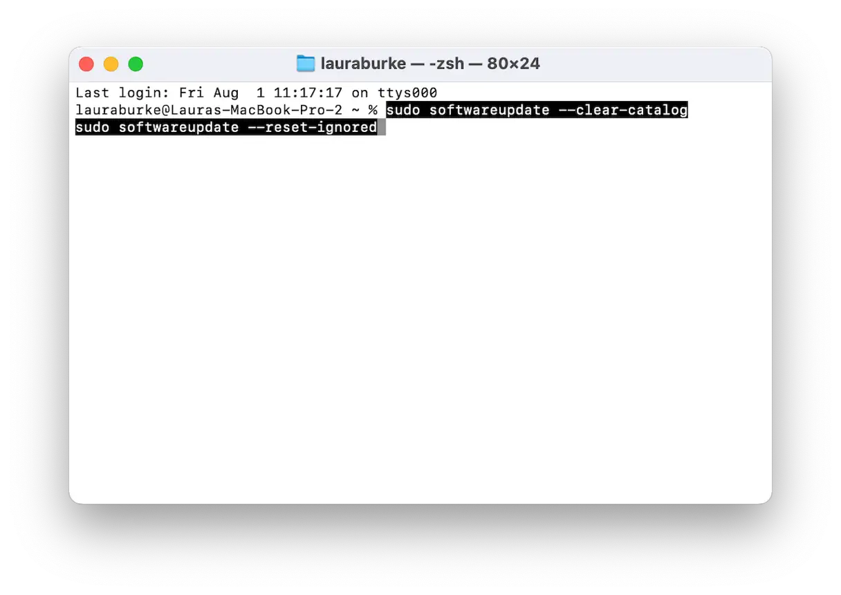 3. إعادة تعيين كتالوج تحديثات البرامج باستخدام Terminal