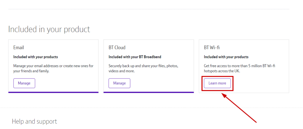 - انقر على معرفة المزيد داخل قسم BT Wi-Fi.