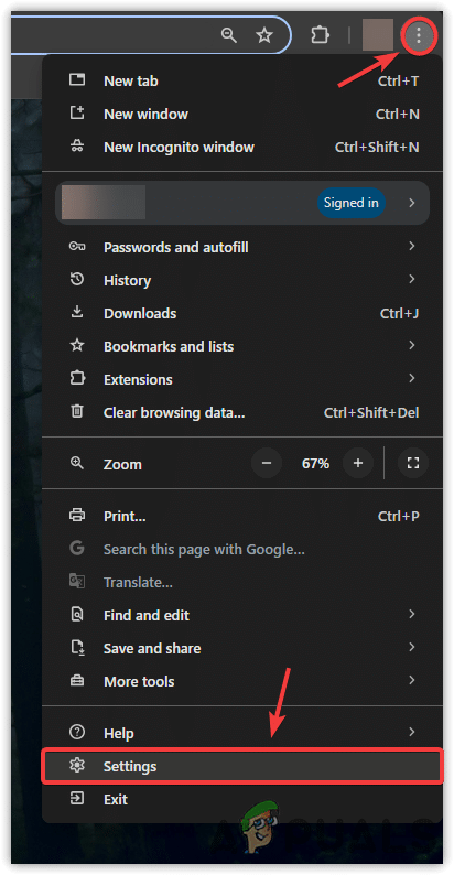 - انقر على النقاط الثلاث في الأعلى واختر الإعدادات.