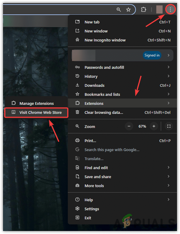- انقر على النقاط الثلاث في أعلى اليمين وحرك المؤشر فوق الإضافات.