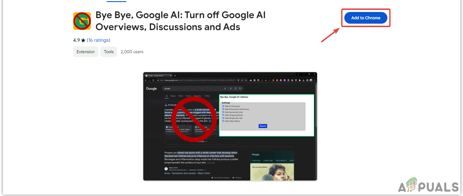 - انقر على Chrome Web Store وابحث عن Bye Bye, Google AI. الآن، أضفه إلى متصفحك.