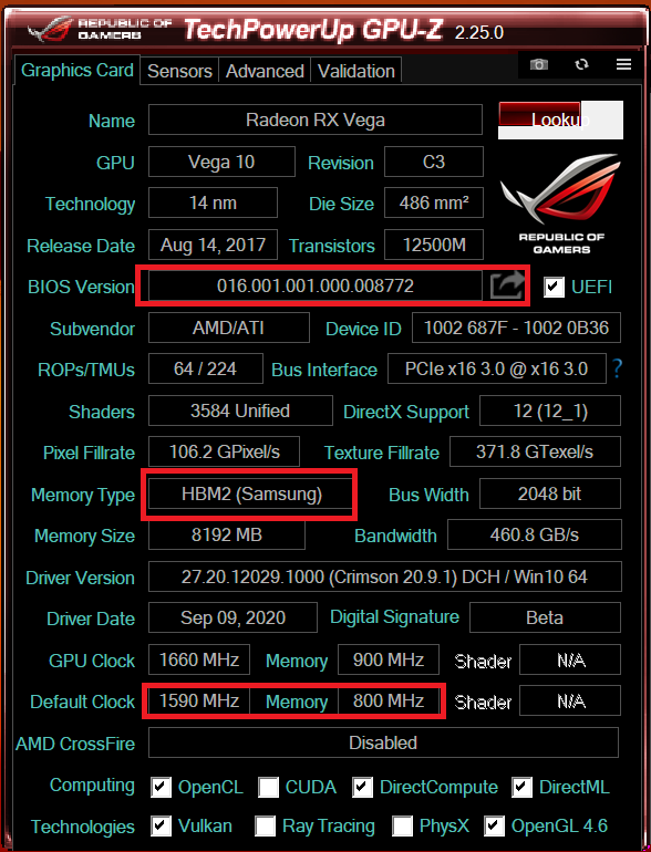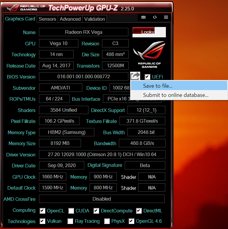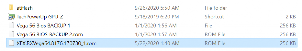- ملف احتياطي لـ BIOS الحالي (BIOS الخاص بـ Vega 56 في هذه الحالة)