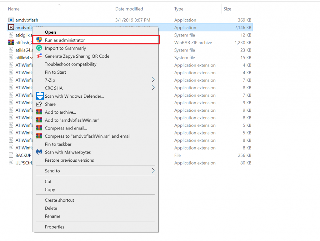 - افتح الملف المسمى “amdvbflashWin.exe” كمسؤول.