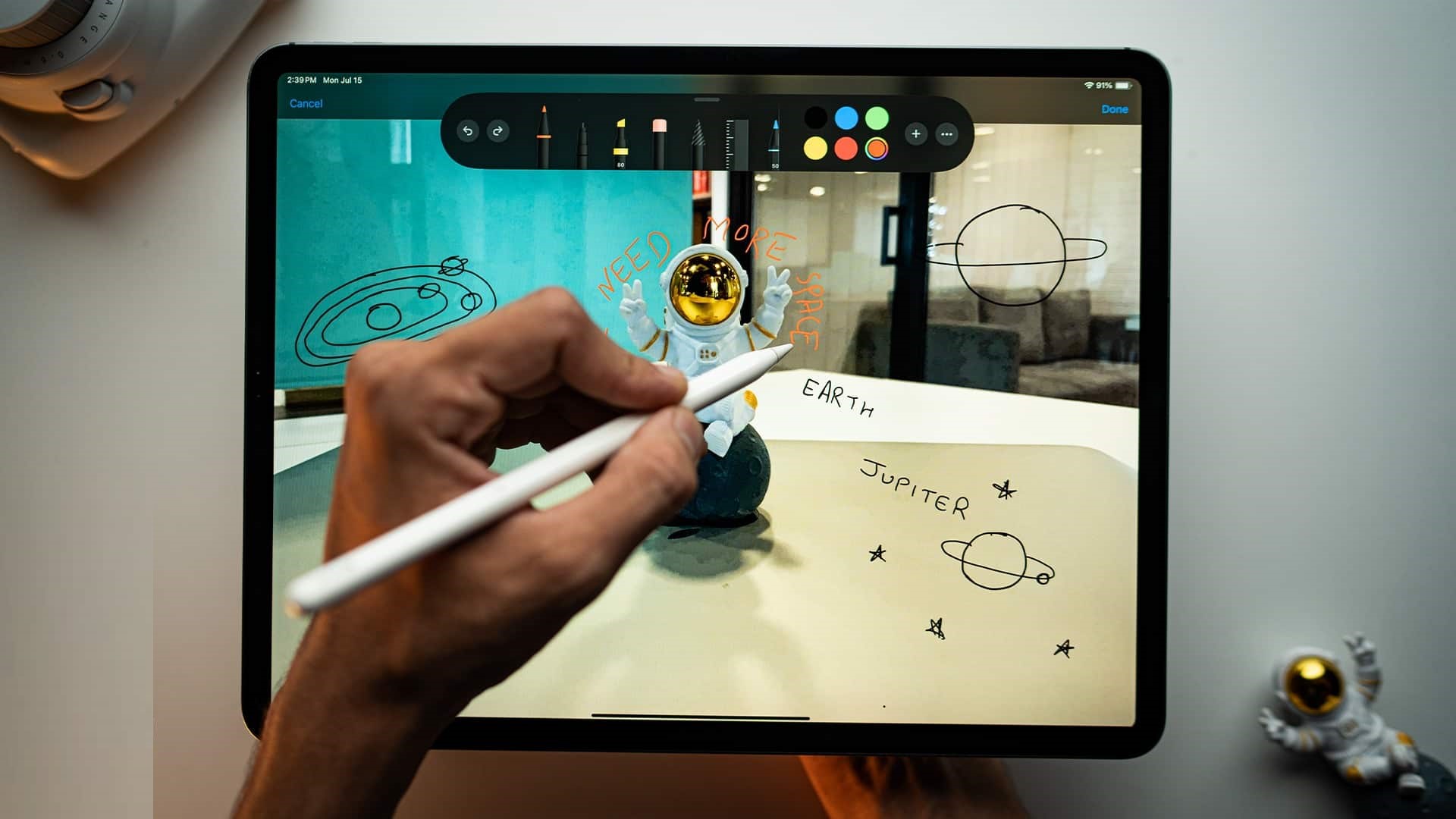 • في تطبيق “الصور” (Photos)، انقر على “تحرير” (Edit) > “توصيف” (Markup) لإضافة التعليقات مباشرةً، باستخدام إصبعك أو قلم Apple Pencil، ثم انقر على “تم” (Done) لحفظ التغييرات في الصورة.