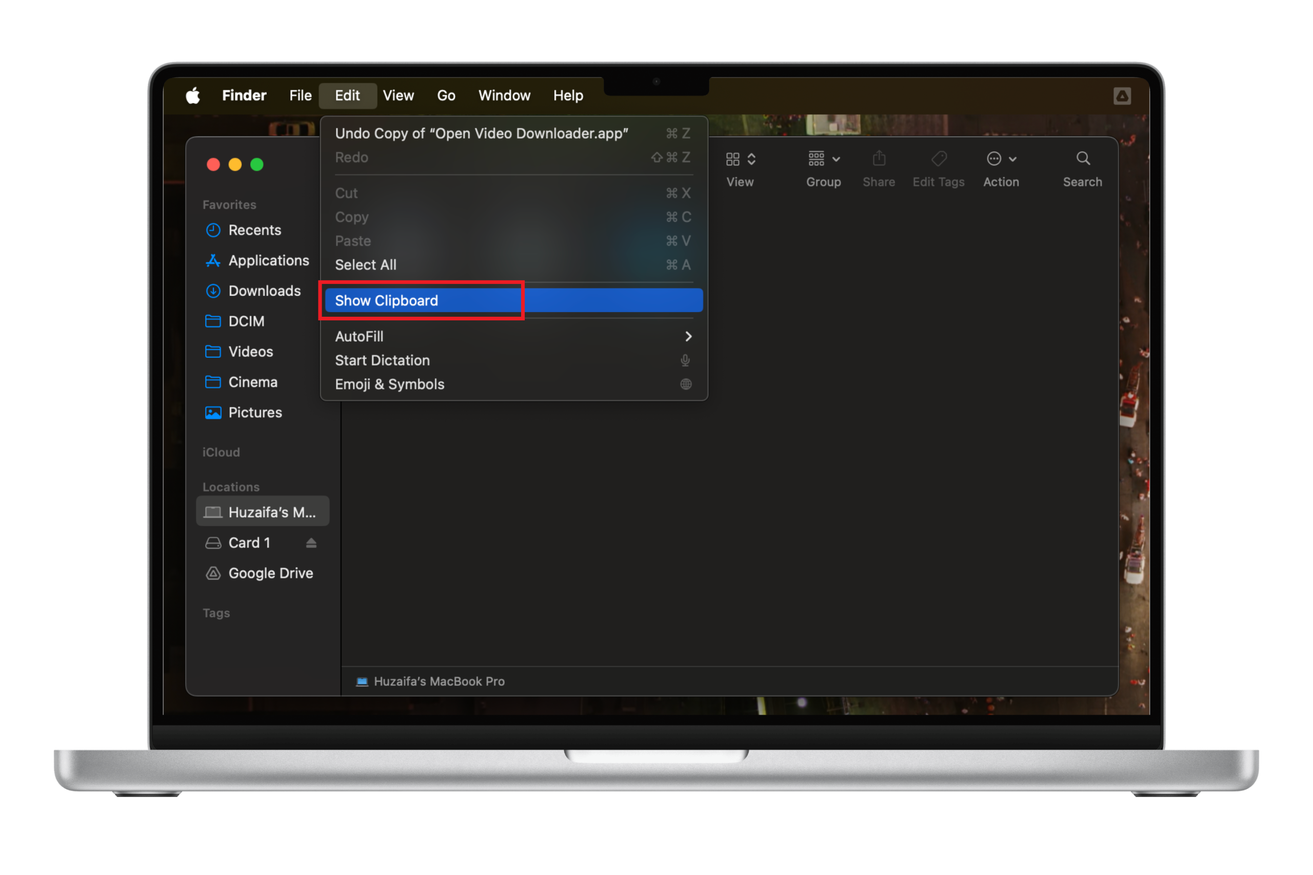من القائمة المنسدلة التي تظهر، اختر “إظهار الحافظة“. ستعرض هذه الخطوة حافظة Mac. ولكن ضع في اعتبارك أن الحافظة تعرض فقط العنصر الأخير الذي نسخته، وليس قائمة بالعناصر المنسوخة خلال الساعة الماضية أو نحو ذلك. هذا يعتبر عيبًا في حافظة Mac، حيث لا يمكنك الوصول إلا إلى ما نسخته مؤخرًا.