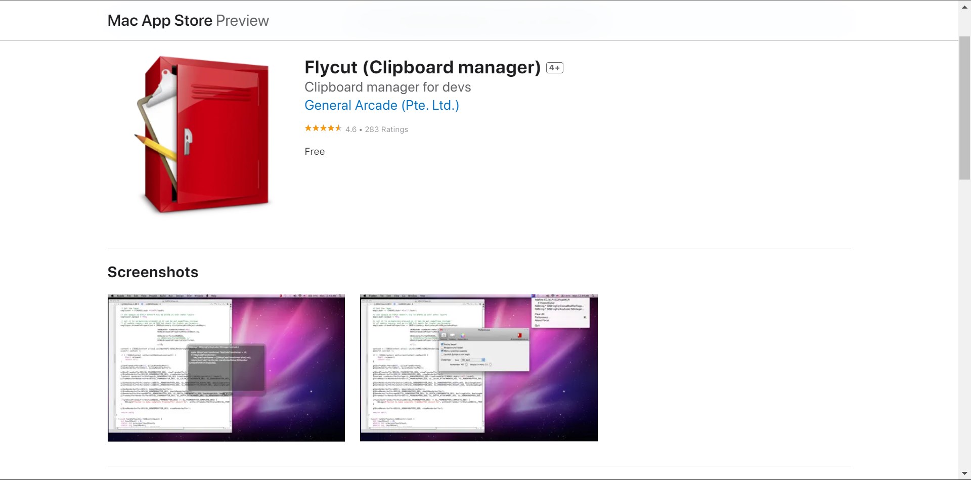Flycut هو مدير حافظة بسيط يخزن سجلًا لمقتطفات النصوص المنسوخة. يعمل في الخلفية ويوفر وصولاً سريعًا إلى سجل الحافظة الخاص بك عبر اختصار لوحة مفاتيح قابل للتخصيص.