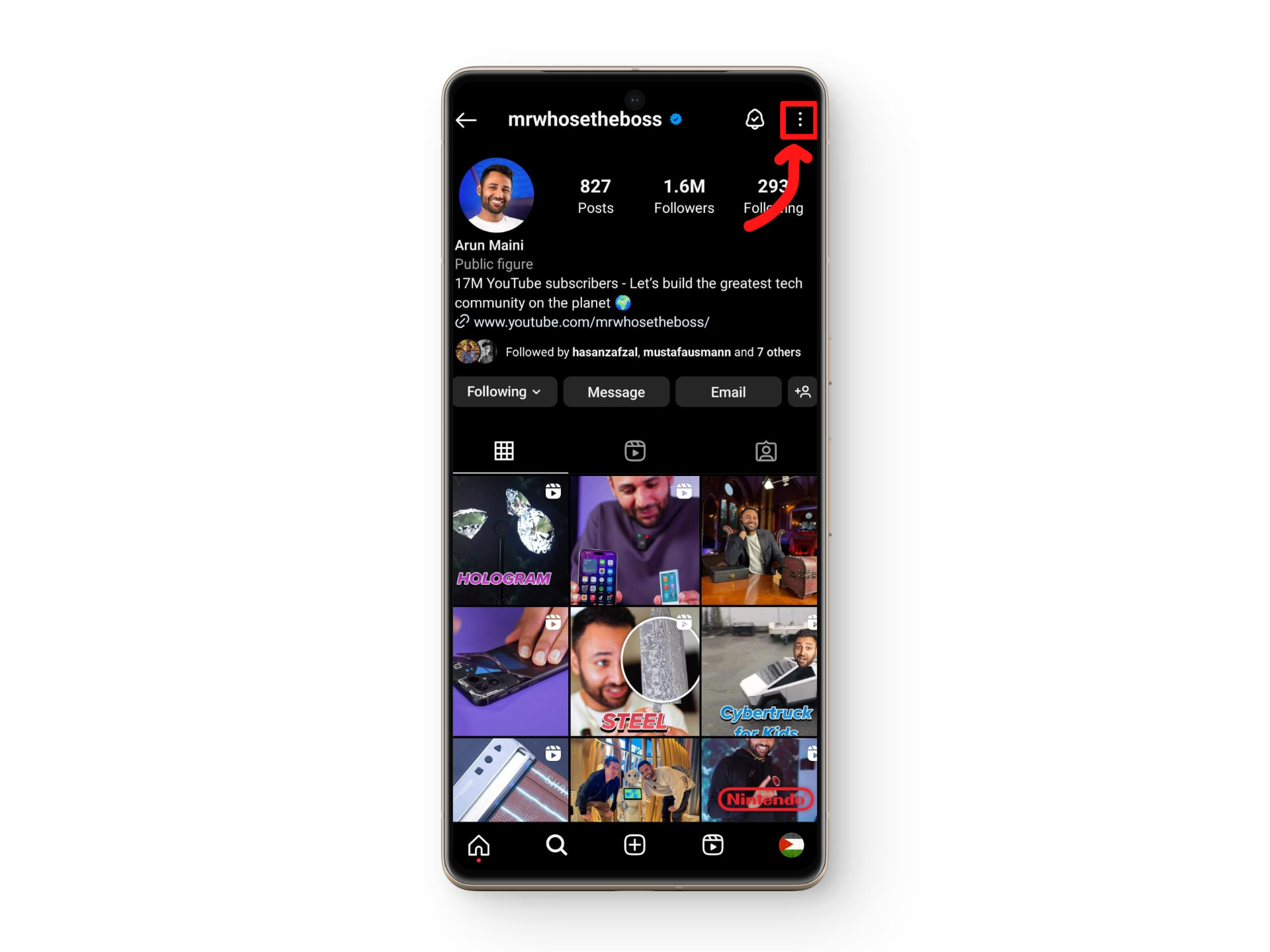 3. افتح الملف الشخصي، ثم انقر على أيقونة النقاط الثلاث.