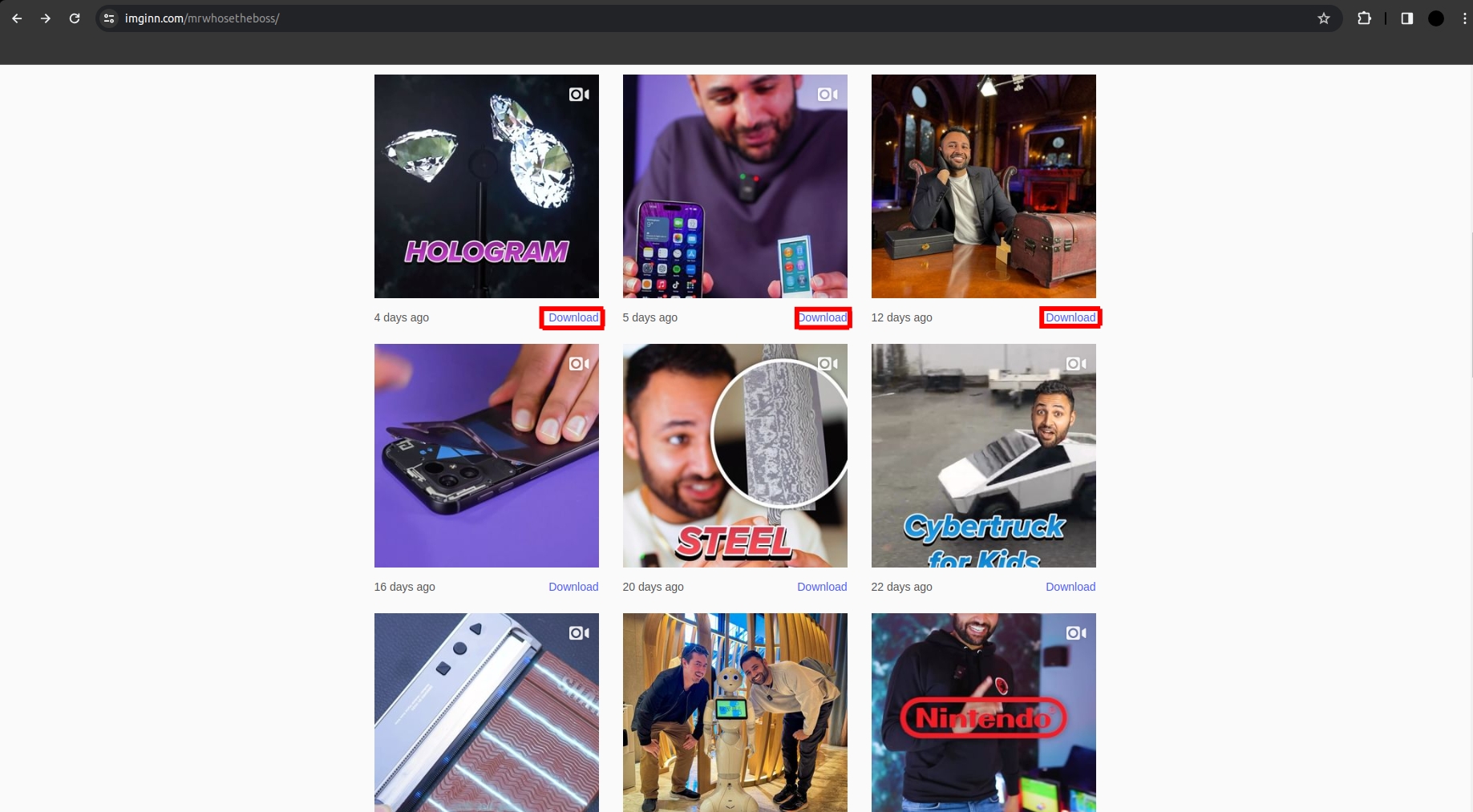 4. سيتم توجيهك إلى صفحة المنشورات الخاصة بالحساب افتراضيًا. أثناء التمرير، سترى جميع المنشورات السابقة، وكل منها يحتوي على خيار تنزيل أسفله. استخدم هذا لتنزيل المنشورات.