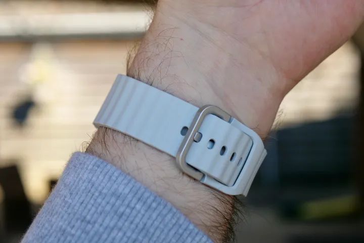 سوار ساعة OnePlus Watch 3 يشبه معظم الساعات الأخرى، مع حلقتين لتثبيت الطرف ومنعه من التلويح. إنه تصميم مجرب وفعال، ويعمل بشكل جيد للغاية. تستخدم كل من Samsung وOnePlus تصميمًا مدمجًا للعروات لإضفاء مظهر رياضي، لكن نظام OnePlus يحافظ على مركزية الساعة على معصمك بشكل أكثر فعالية، مما يجعلها أكثر راحة. كما أن هيكل الساعة المصنوع من الفولاذ المقاوم للصدأ المصقول يبدو أكثر أناقة من هيكل الألومنيوم في ساعة Galaxy Watch 7.