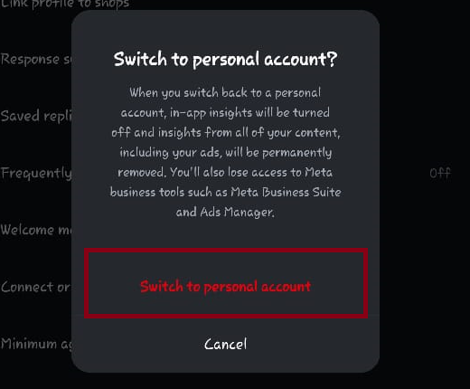 - أكد التغيير بالضغط على التبديل إلى حساب شخصي مرة أخرى.
