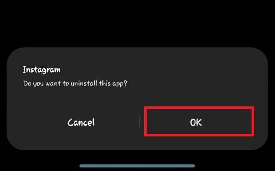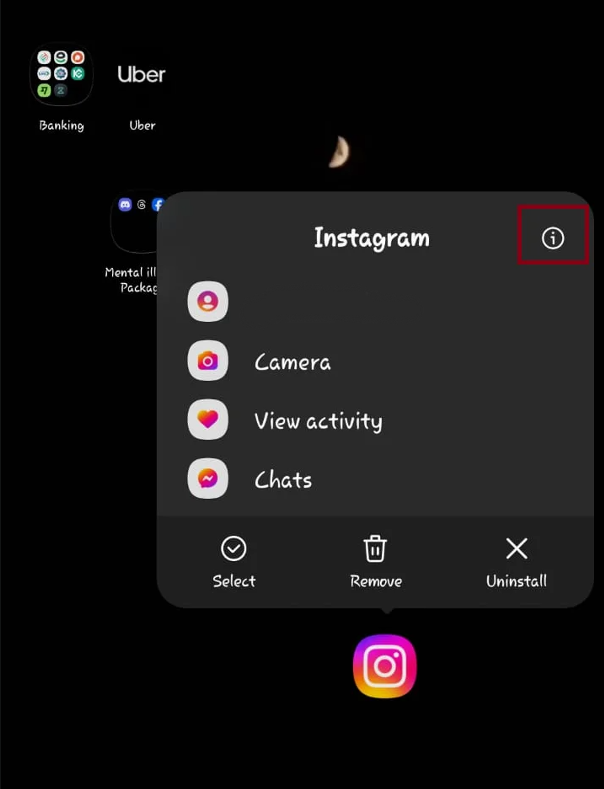 - اضغط مطولاً على أيقونة تطبيق Instagram واختر إلغاء التثبيت.
