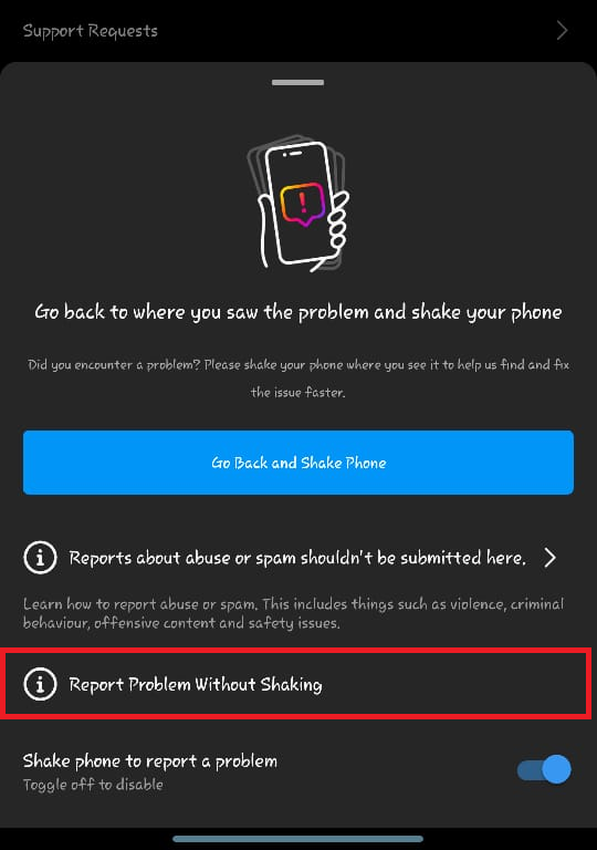 إذا لم تُحل المشكلة بأي من الخطوات المذكورة أعلاه، فقد حان الوقت للاتصال بدعم Instagram. يمكنك الإبلاغ عن مشكلتك وسيقومون بالتعامل معها على الفور.