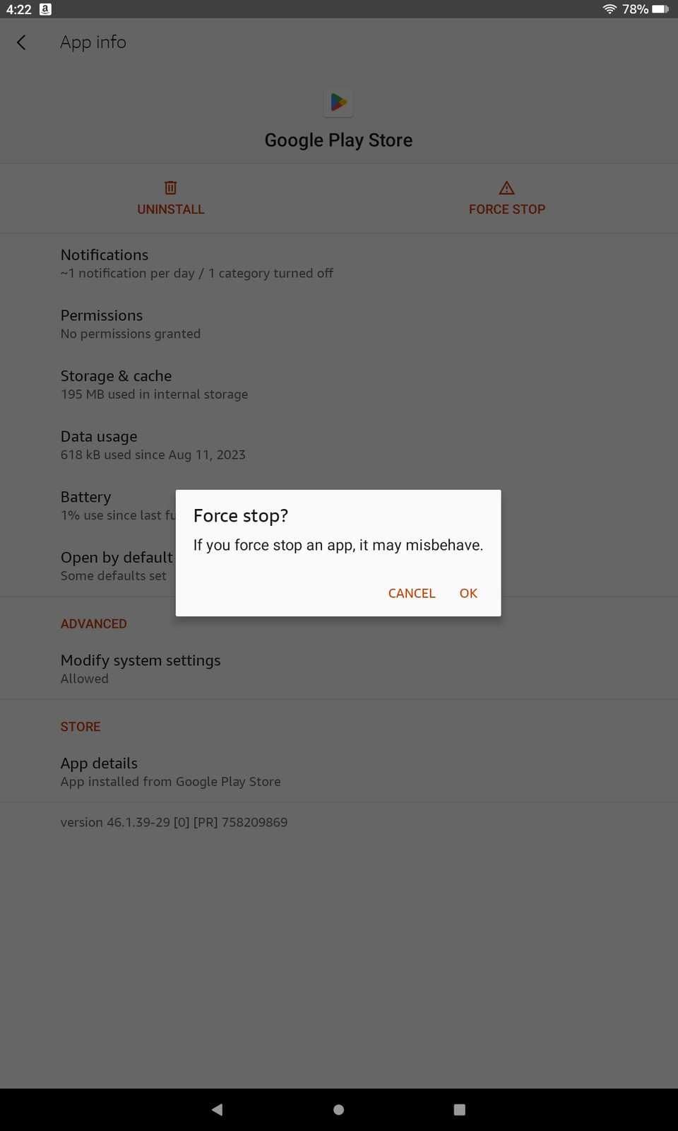 إذا لم ينجح ذلك، فاتبع الخطوات المذكورة أعلاه مرة أخرى، ولكن أعد تشغيل جهازك اللوحي قبل فتح متجر Play. وإذا لم يفلح ذلك، فأوقف بالقوة وامسح بيانات خدمات Google Play ومتجر Play.
