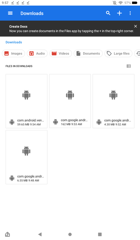 - سترى جميع ملفات APK الأربعة. إذا لم تجدها، ارجع وتحقق أي منها فاتك (أو قم بتنزيلها جميعًا تحسبًا لأي طارئ).