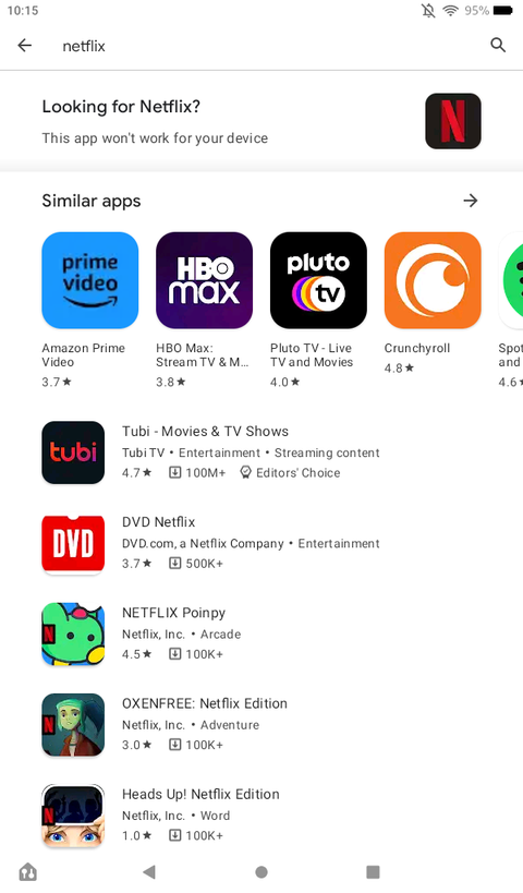 - يخفي متجر Play بعض التطبيقات على أجهزة Fire اللوحية لأنها غير معتمدة من Google بموجب SafetyNet. تطبيق Netflix مثال على ذلك. ابحث في متجر تطبيقات Amazon أو قم بتنزيلها من APKMirror لتنزيل هذه التطبيقات.