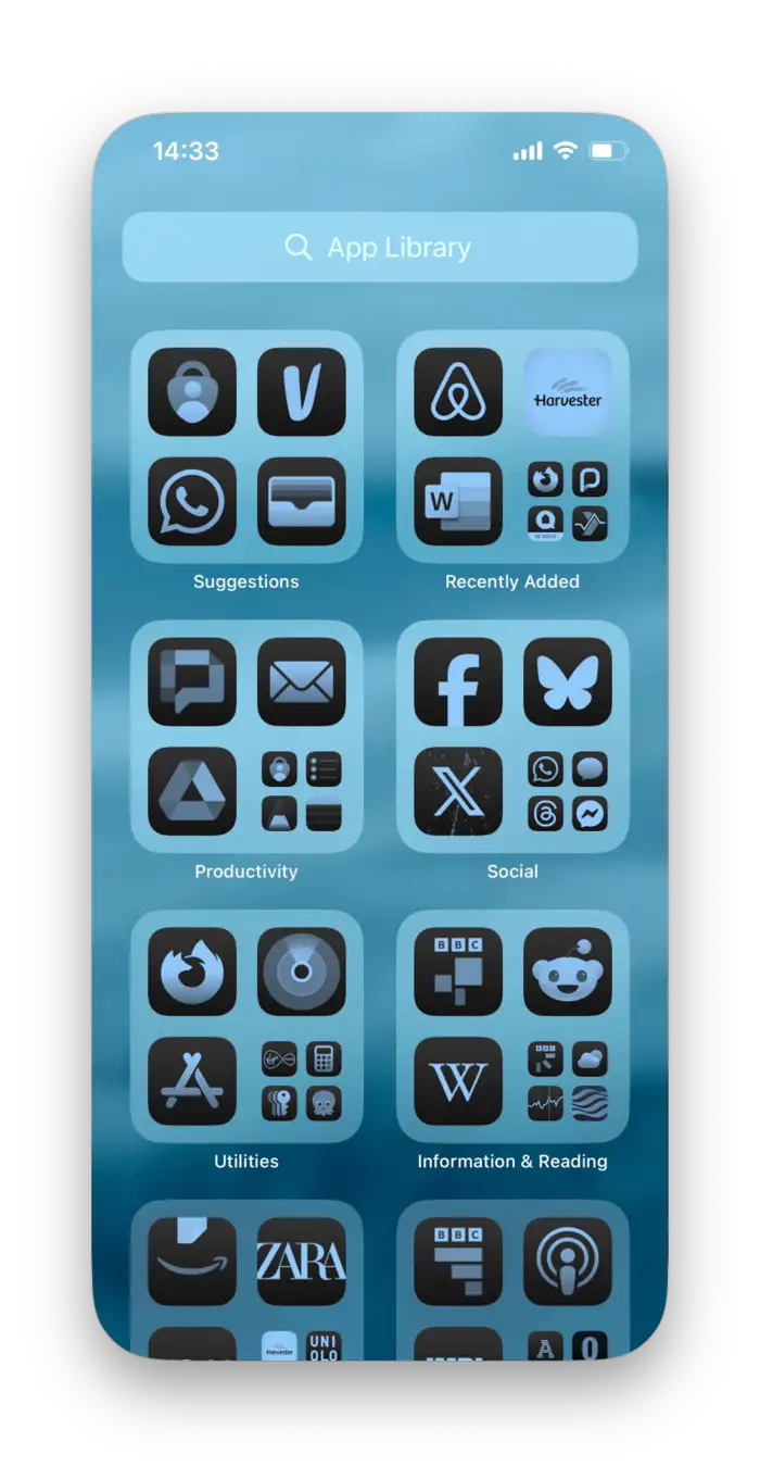- لتشغيل تطبيق، انقر عليه في الشاشة الرئيسية أو في “مبدل التطبيقات”. يمكنك أيضًا فتح المجلدات بالنقر عليها.