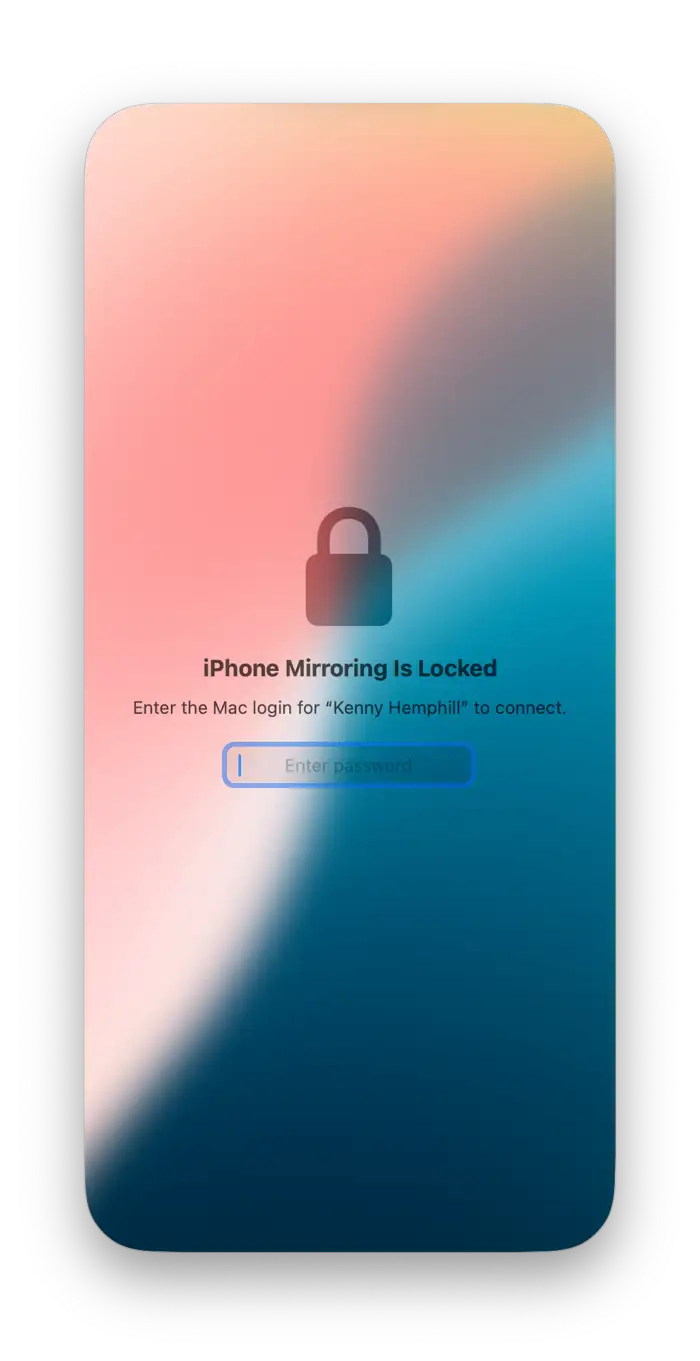 - أدخل كلمة مرور تسجيل الدخول الخاصة بجهاز Mac في مربع النص الموجود في تطبيق iPhone Mirroring. هذه الخطوة ضرورية لمنح التطبيق الأذونات اللازمة للوصول إلى شاشة جهازك.