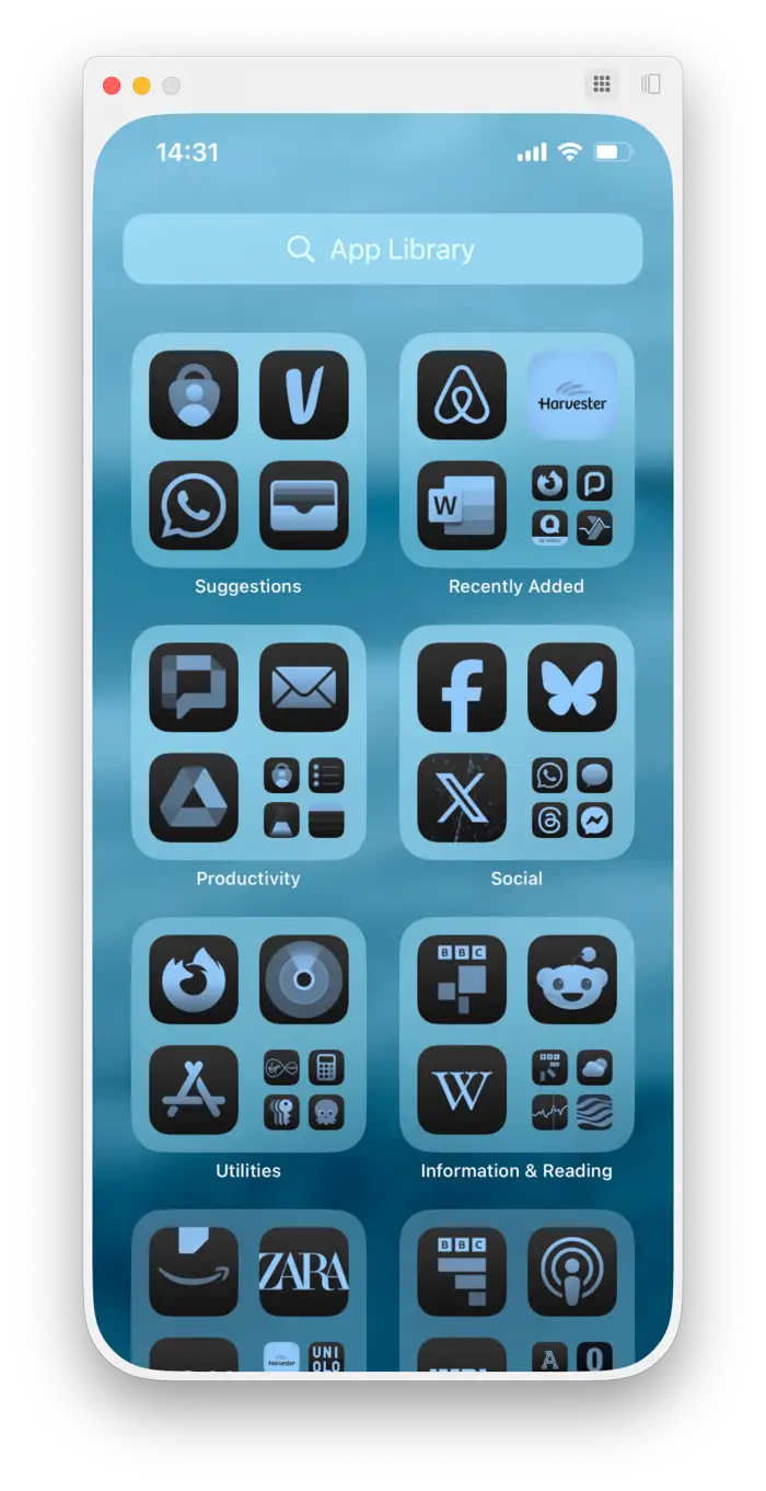 - الآن، يجب أن تشاهد الشاشة الرئيسية لجهاز iPhone الخاص بك في تطبيق iPhone Mirroring على جهاز Mac.