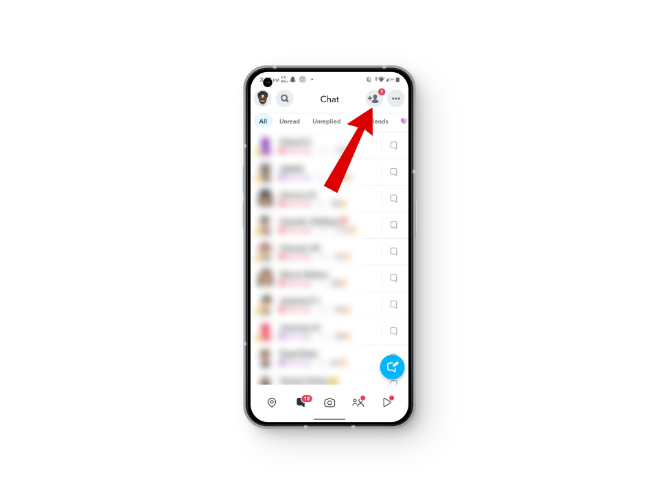 - من أي علامة تبويب في التطبيق، اضغط على زر إضافة في الزاوية العلوية اليمنى. سينقلك هذا إلى شاشة إضافة الأصدقاء.