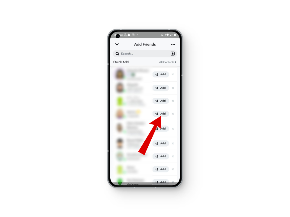- لعرض القائمة، افتح Snapchat، اضغط على ‘إضافة’ في الزاوية العلوية اليمنى، ثم مرر عبر قسم “الإضافة السريعة” لإضافة الأشخاص.