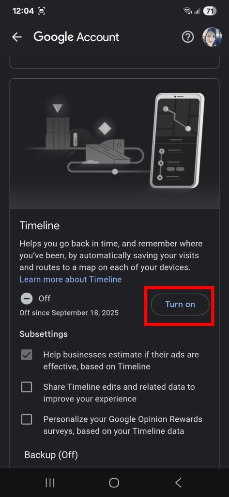 لتفعيل ميزة الجدول الزمني (Timeline) لحساب Google الخاص بك، اتبع الخطوات التالية: