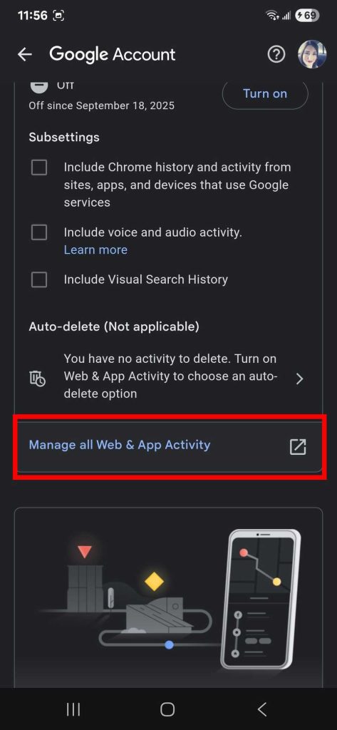 بدلاً من استخدام تطبيق Google المخصص على الهاتف الذكي، افتح صفحة “نشاطي” في متصفح الويب.