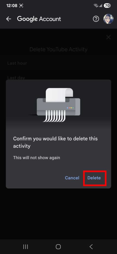 - اضغط على زر حذف لحذف سجل بحثك في YouTube.
