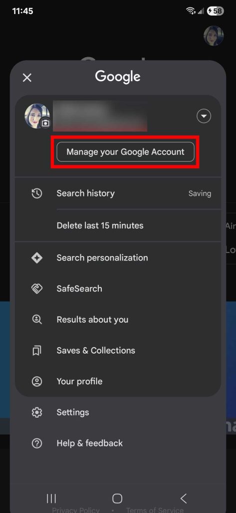 - انقر على حساب Google أو إدارة حسابك في Google.
