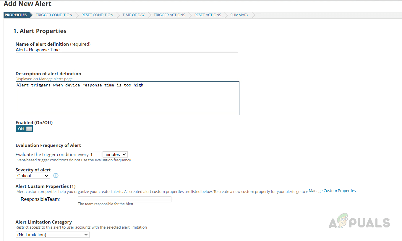 الآن، لنستعرض كيفية إعداد تنبيه لزمن الاستجابة لأي جهاز قيد المراقبة.