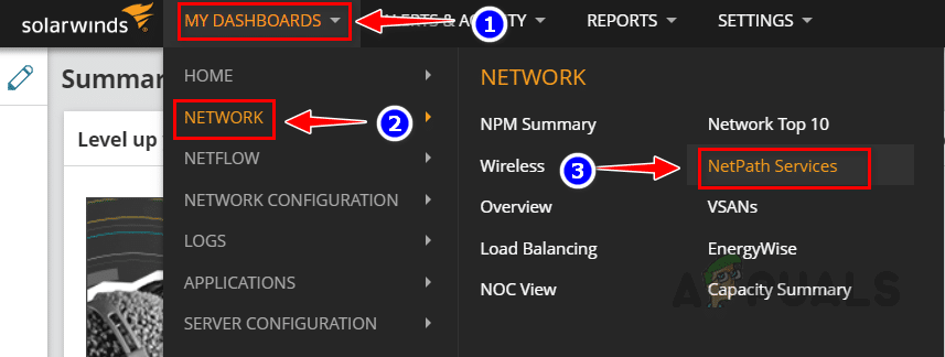 - انتقل إلى لوحات المعلومات الخاصة بي -> الشبكة ثم انقر على NetPath Services.