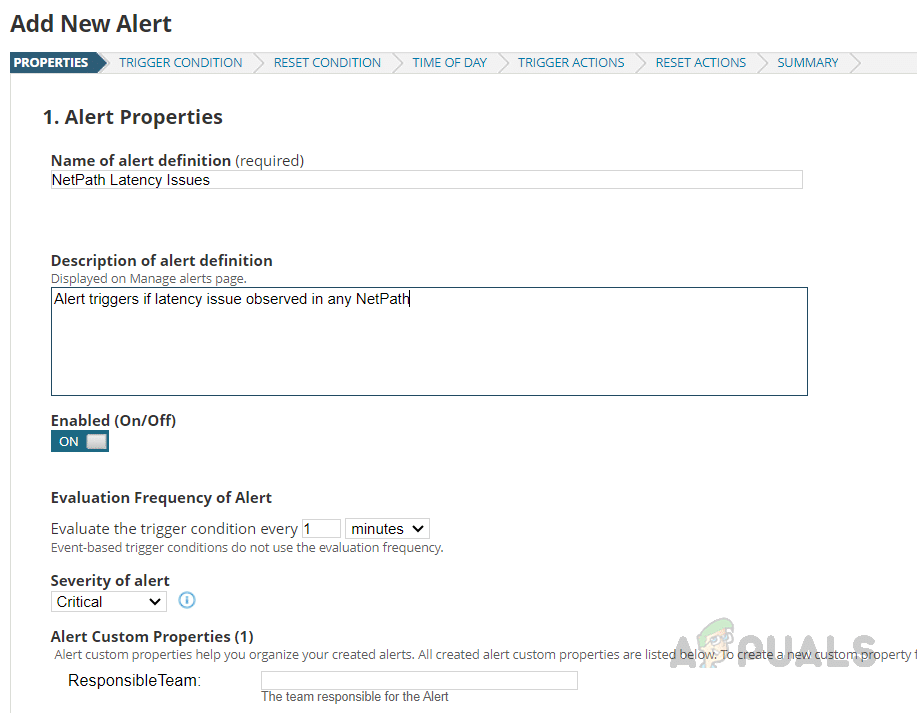 الآن، دعنا نرى كيفية تكوين التنبيهات لمشكلات زمن الانتقال المكتشفة في NetPath.