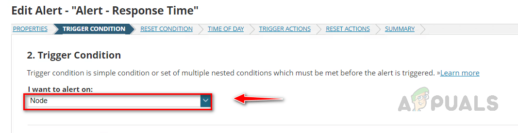 - حدد العقدة من القائمة المنسدلة أرغب في التنبيه بشأن.