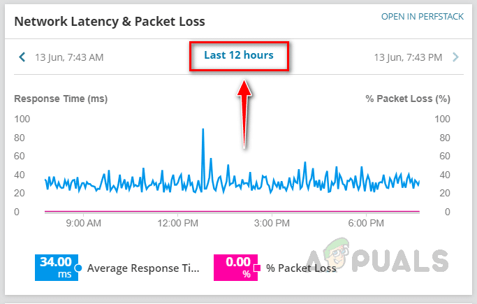 - يمكنك رؤية وقت الاستجابة الحالي بالإضافة إلى بيانات زمن انتقال الشبكة (Network Latency) لآخر 12 ساعة بناءً على بيانات وقت استجابة الجهاز.