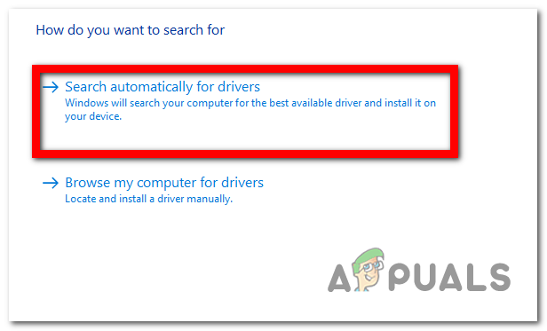 - بعد الانتهاء من ذلك، انقر على البحث تلقائيًا عن برامج التشغيل (Search automatically for drivers) وانتظر حتى يكتمل الفحص. إذا تم العثور على أي تحديثات، فتأكد من تثبيتها.