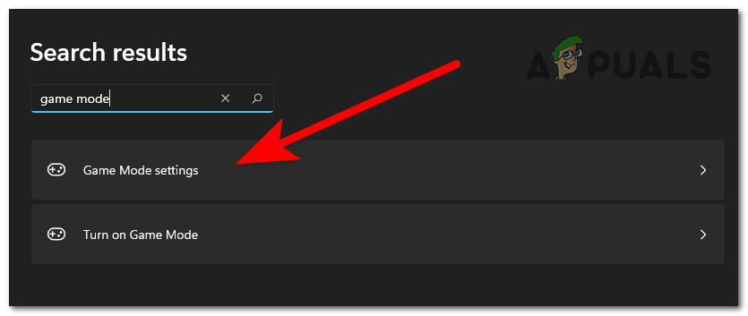 - داخل Settings، استخدم خيار البحث واكتب “Game Mode“، ثم اضغط على Enter وافتح إعدادات Game Mode.