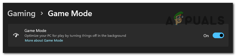 - بمجرد الانتهاء من ذلك، تأكد من تفعيل Game Mode. يجب أن يكون المفتاح المجاور له باللون الأزرق.