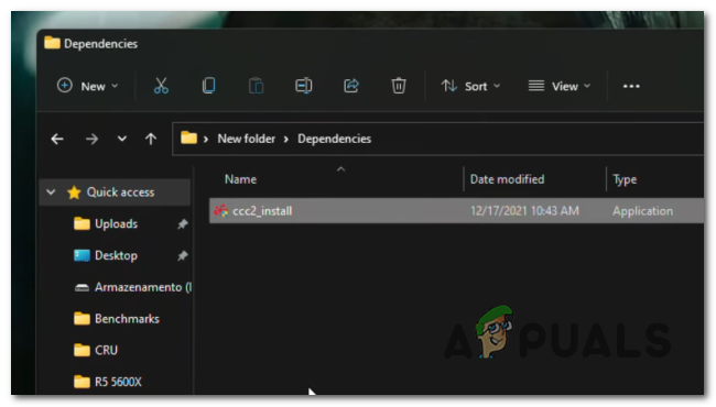 - الآن، تحتاج إلى فتح المجلد الذي أنشأته حديثًا والوصول إلى مجلد Dependencies، ثم يجب عليك نقل ملف ccc2_install من سطح المكتب إلى هذا المجلد.