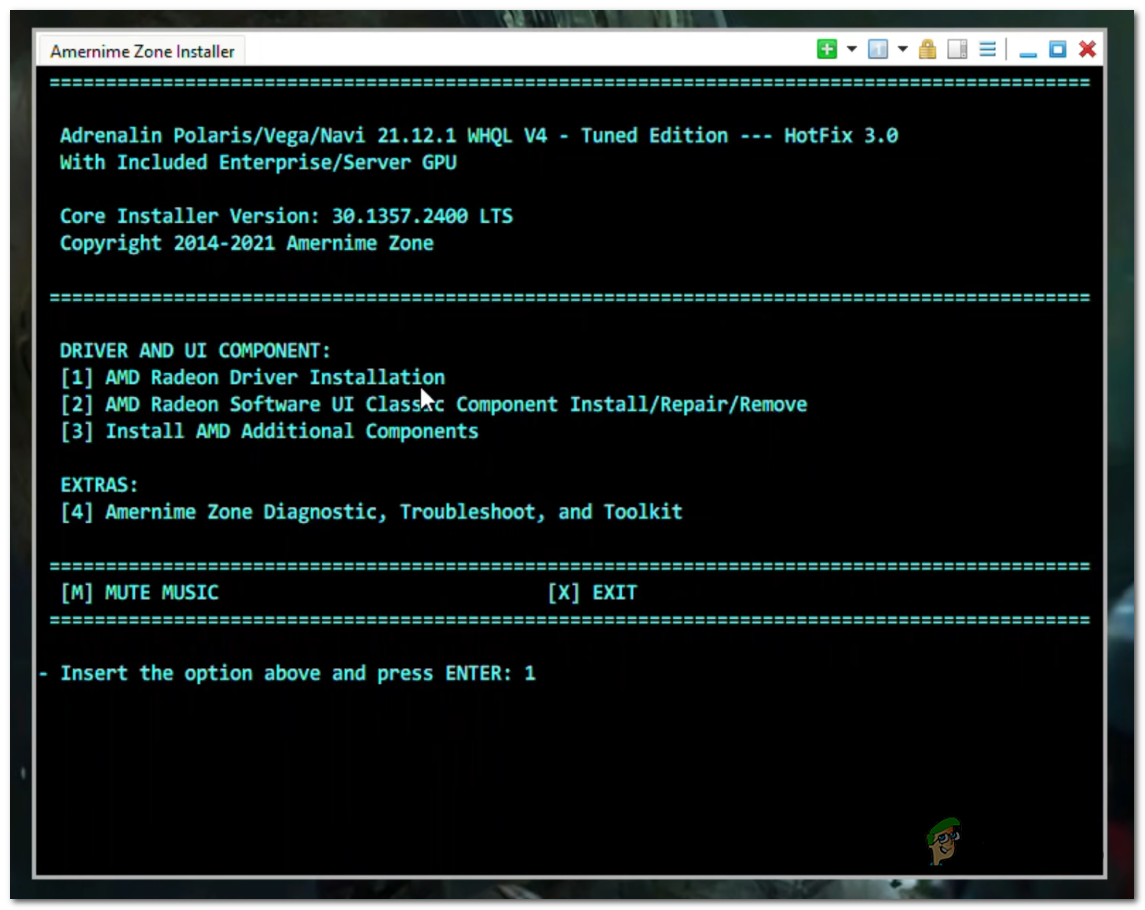 - عندما يظهر المثبت على شاشتك، اضغط على المفتاح 1 لبدء عملية التثبيت. ثم اضغط على Enter للمتابعة.
