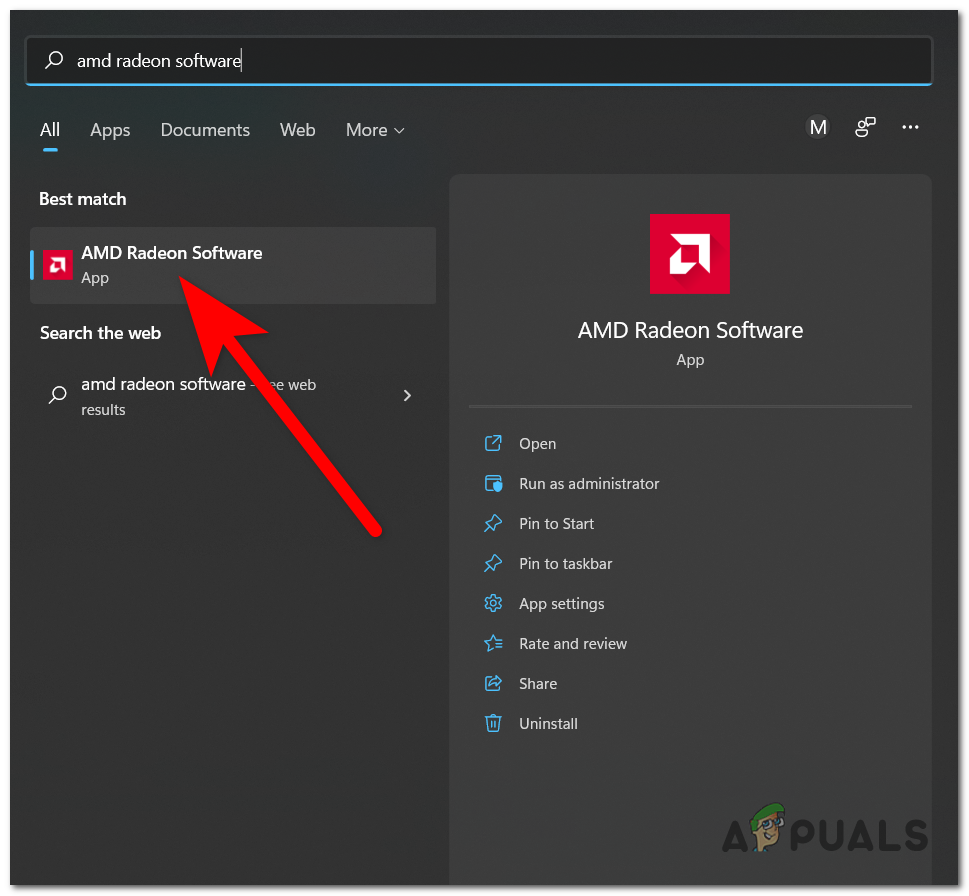 - عند الانتهاء من ذلك، يمكنك أيضًا استخدام AMD Radeon Software للبحث عن التحديثات المتاحة لوحدة معالجة الرسومات (GPU) الخاصة بك. تحتاج إلى فتح التطبيق.