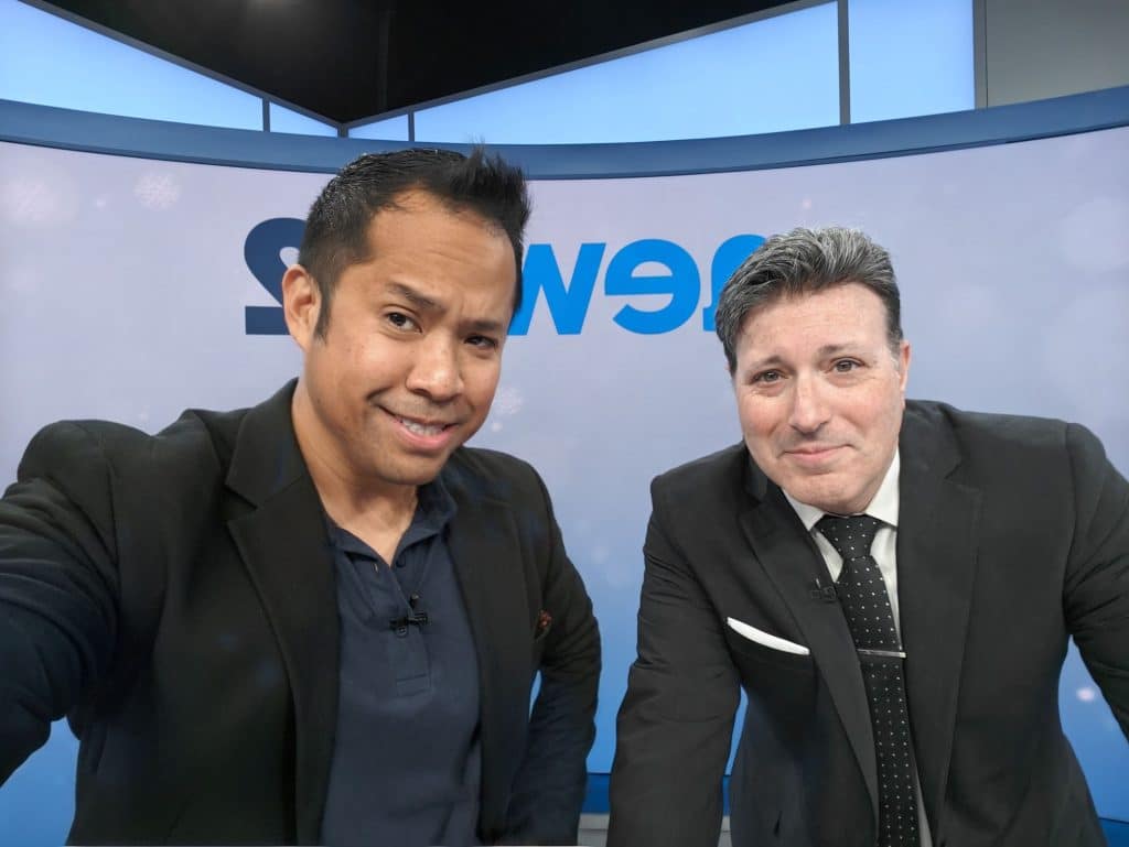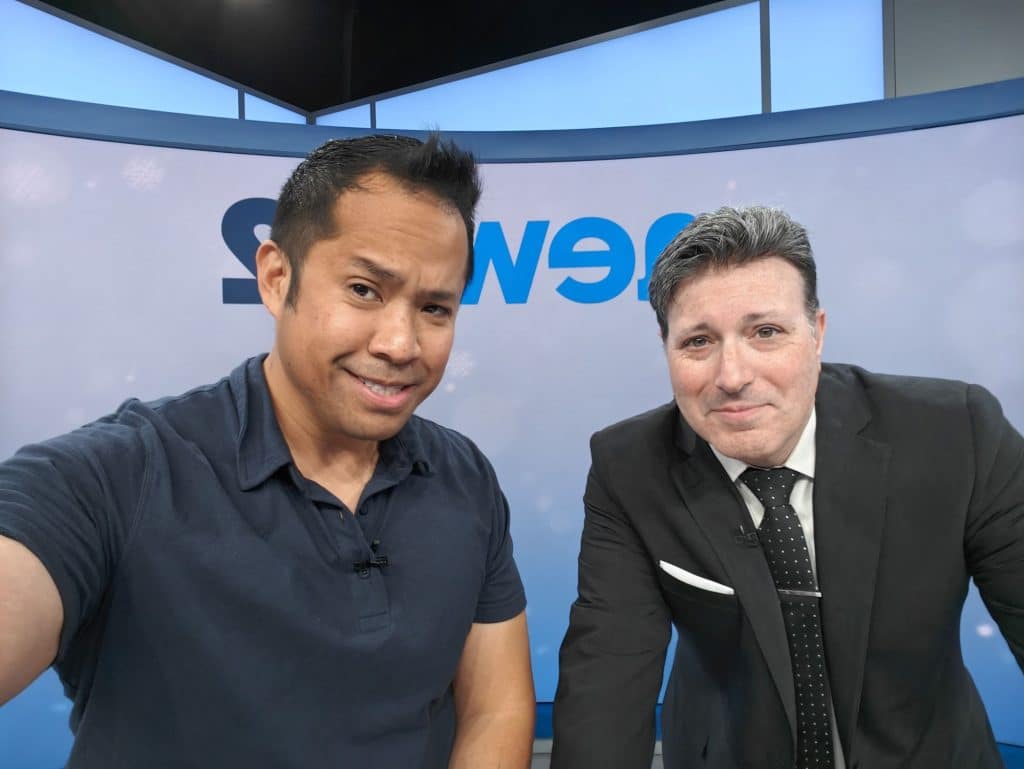 تبديل الخلفيات سهل. الصعب هو تغيير جزء صغير من اللقطة إلى شيء آخر، لكن Ask Photos لا يواجه أي مشكلة على الإطلاق في فعل ذلك بالضبط. إذا نظرت إلى صورة السيلفي التي التقطتها مع صديقي إريك لاندسكرونر في News 12 NJ خلال فقرة فحص تقني سجلناها مؤخرًا، لم يكن لدي وقت لارتداء سترة.