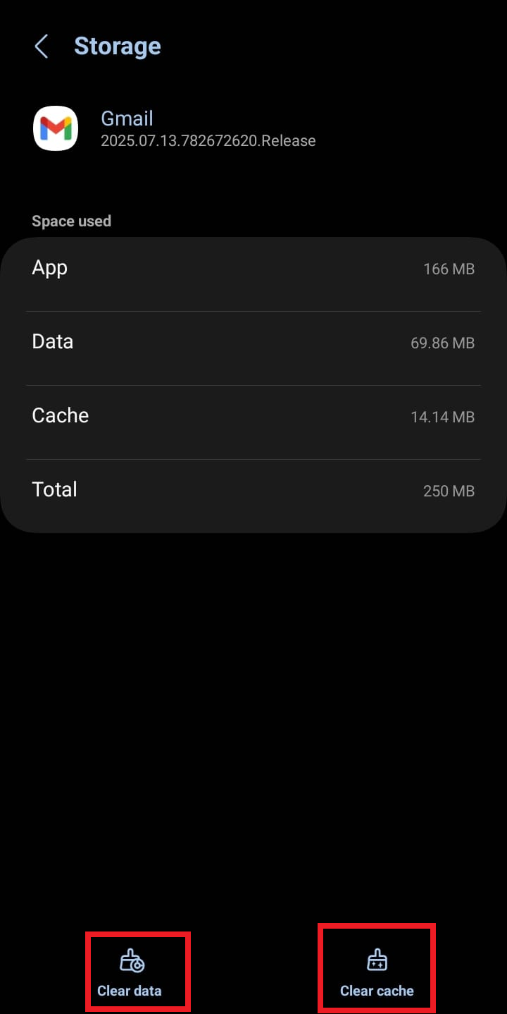 يخزن Gmail رموز تسجيل الدخول المؤقتة، ورسائل البريد الإلكتروني المخزنة مؤقتًا، وتعليمات المزامنة على هاتفك. إذا كانت هذه الملفات تالفة أو قديمة، فلا يمكن للتطبيق المصادقة بشكل صحيح مع خوادم Google. يؤدي مسح البيانات وذاكرة التخزين المؤقت إلى إجبار Gmail على إعادة بناء ملفات جديدة وطلب رموز جديدة، مما يحل حلقات المزامنة العالقة.