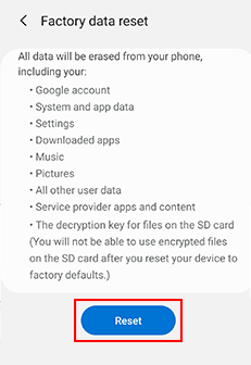 - حدد إعادة ضبط بيانات المصنع.