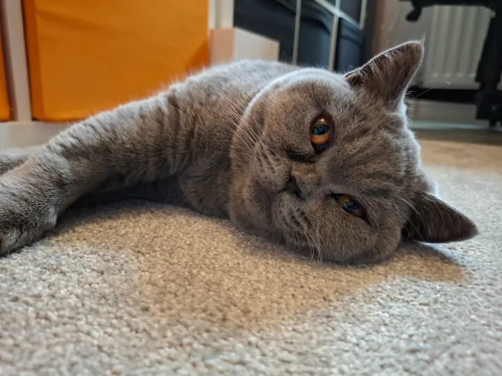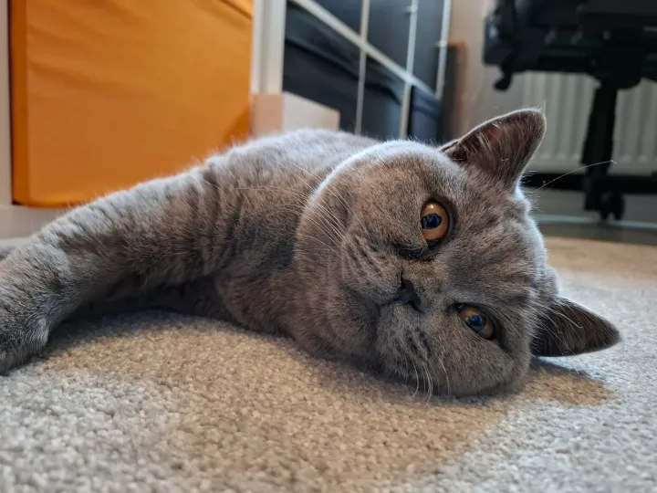 يتمتع هاتف Galaxy A55 أيضًا بسرعة التقاط أكبر، ويلتقط التركيز واللحظات بفعالية أكبر من Galaxy A56. نادرًا ما تجلس الحيوانات الأليفة ساكنة لالتقاط صورها، لذلك عليك الحصول على أفضل ما يمكنك. صورة القطة التي التقطها Galaxy A55 أكثر وضوحًا وتركيزًا دقيقًا، وتتميز بتأثير HDR ومعالجة أقل حدة.