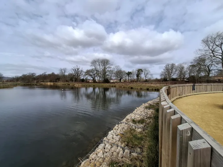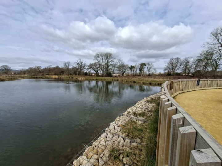 من المثير للاهتمام أن الكاميرا ذات الزاوية الواسعة في هاتف Samsung Galaxy A56 تُظهر المزيد من التحسينات التي كنا نرغب في رؤيتها في الكاميرا الرئيسية. فهناك ضوضاء أقل، وتفاصيل أكثر قليلاً، ومعالجة أقل وضوحًا مقارنة بهاتف Galaxy A55، مما ينتج عنه صورًا أكثر وضوحًا. تُعد صورة البحيرة مثالاً رائعًا، مع اختلافات واضحة في الماء، وكذلك على السياج الخشبي وضفة التراب. كما أن سماء صورة Galaxy A55 أكثر ضوضاءً، وهو عكس ما رأيناه في الكاميرا الرئيسية.