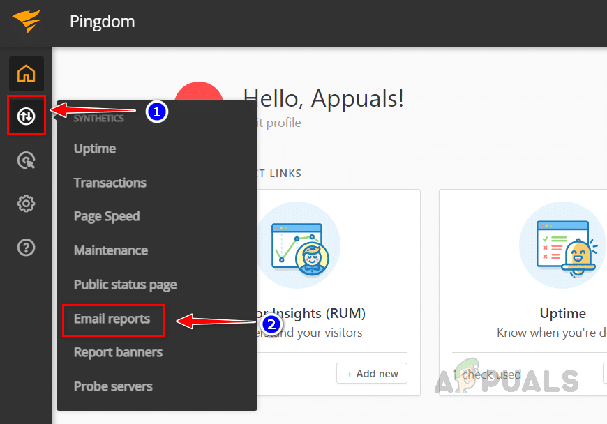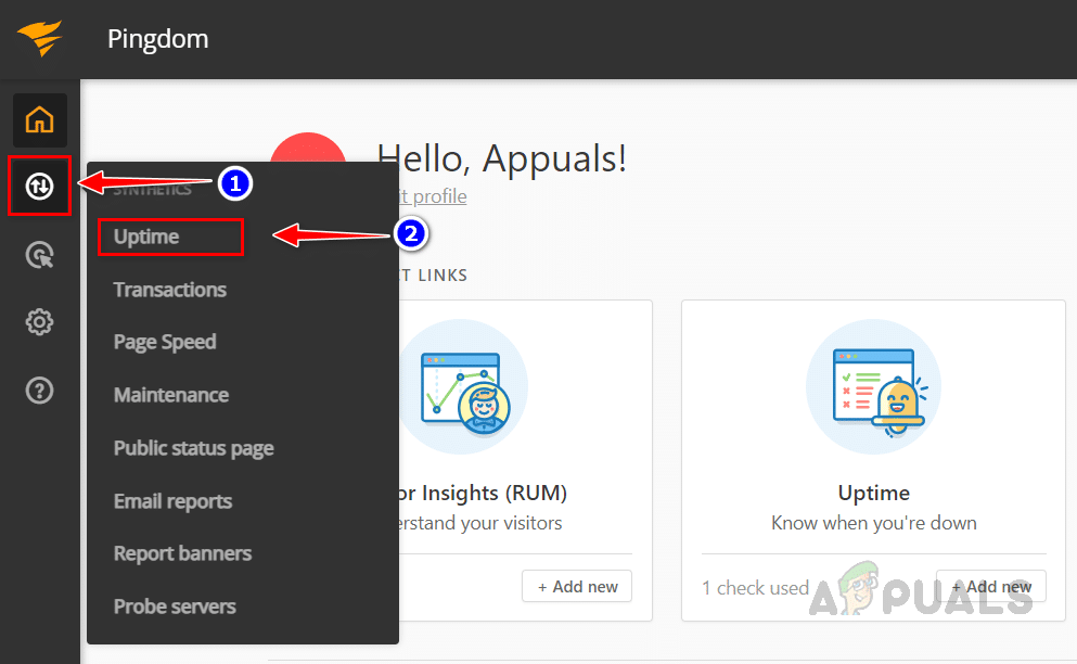 - سجّل الدخول إلى لوحة تحكم Pingdom الخاصة بك على الويب.