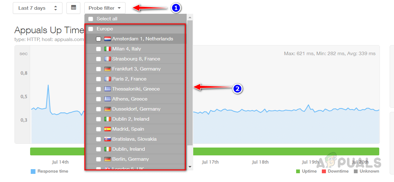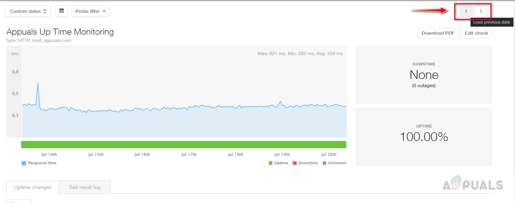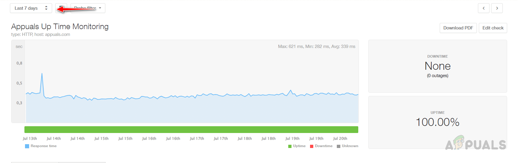 - يمكنك رؤية وقت الاستجابة ورسم بياني لوقت التشغيل بمجرد جمع Pingdom تفاصيل كافية.