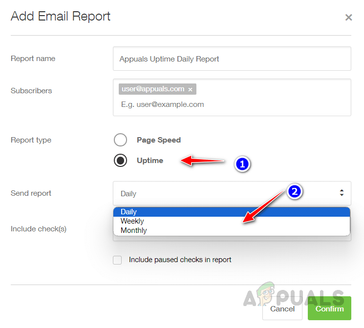 جدولة التقارير في Pingdom