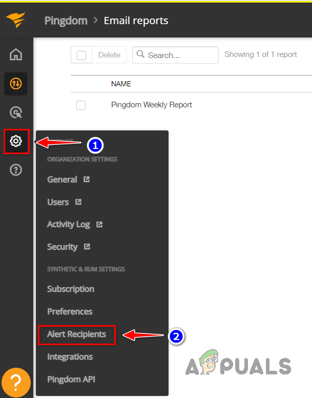 - يقوم Pingdom تلقائيًا بتسليم تقارير أسبوعية إلى معرفات Email المختارة لفحص مراقبة الموقع المحدد.