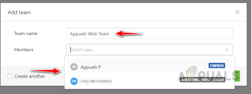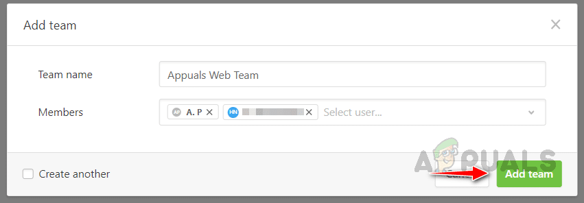 - انقر على إضافة فريق لإنشاء الفريق.